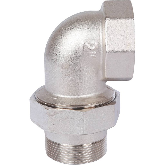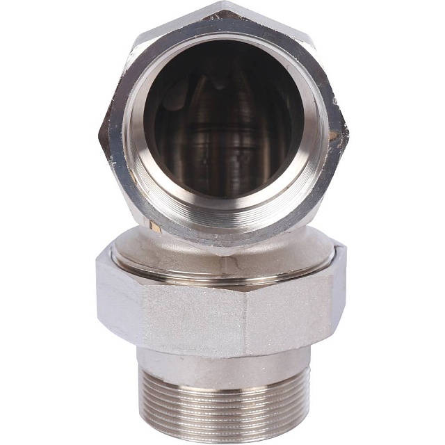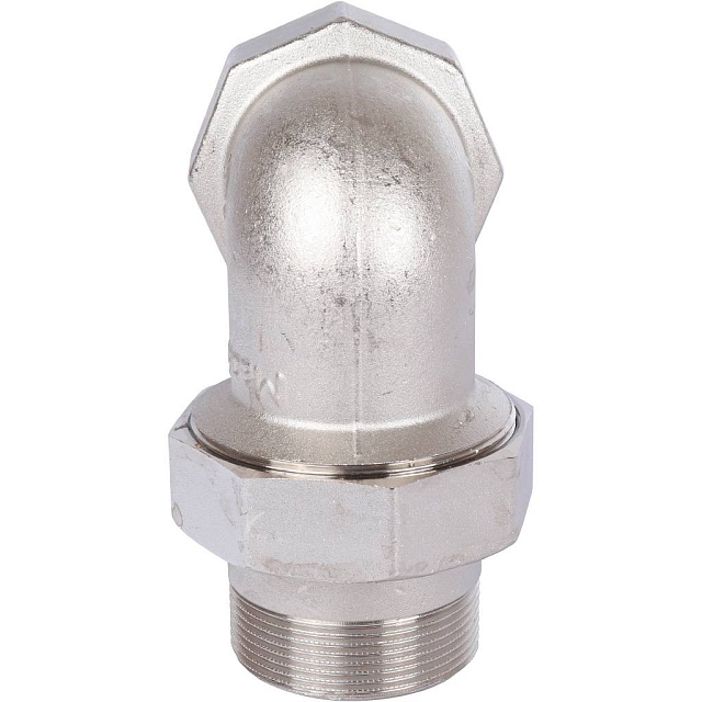 Разъемное угловое соединение "американка" ВН, уплотнение под гайкой o-ring кольцо, никелированное.
