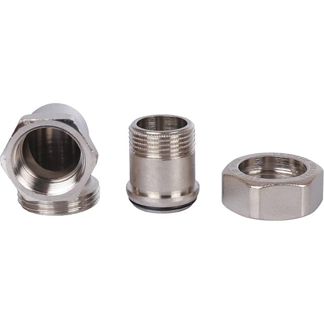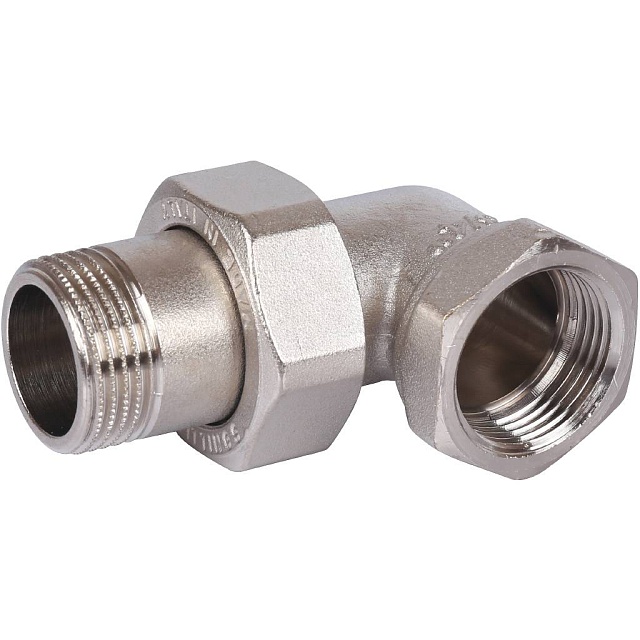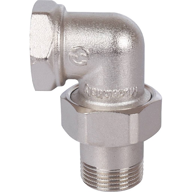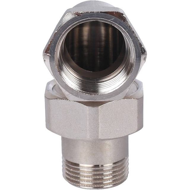 Разъемное угловое соединение "американка" ВН, уплотнение под гайкой o-ring кольцо, никелированное.