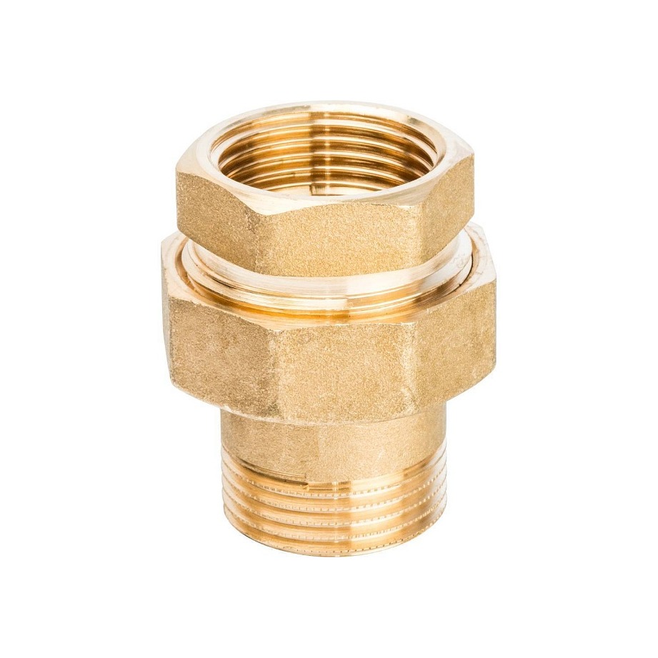 Разъемное соединение типа «американка» с внутренней/наружной резьбой, уплотнение под гайкой по плоскости.