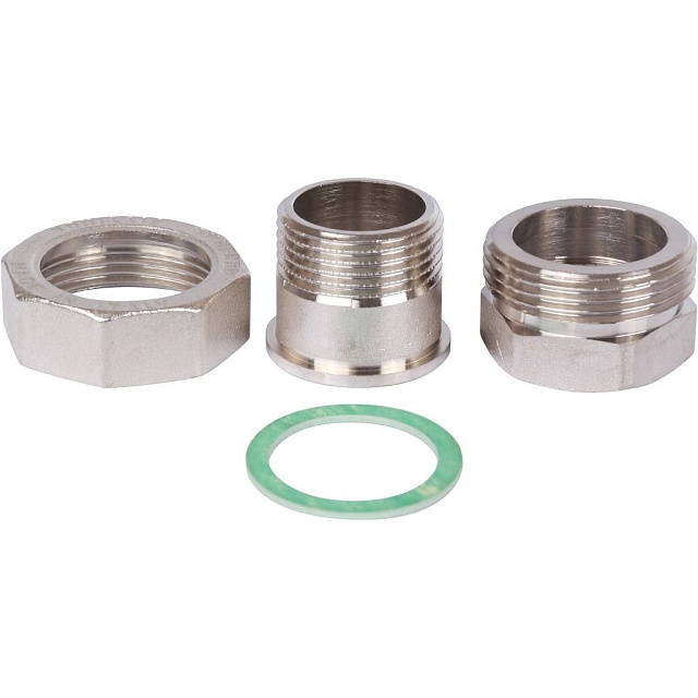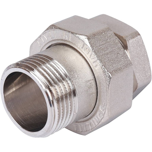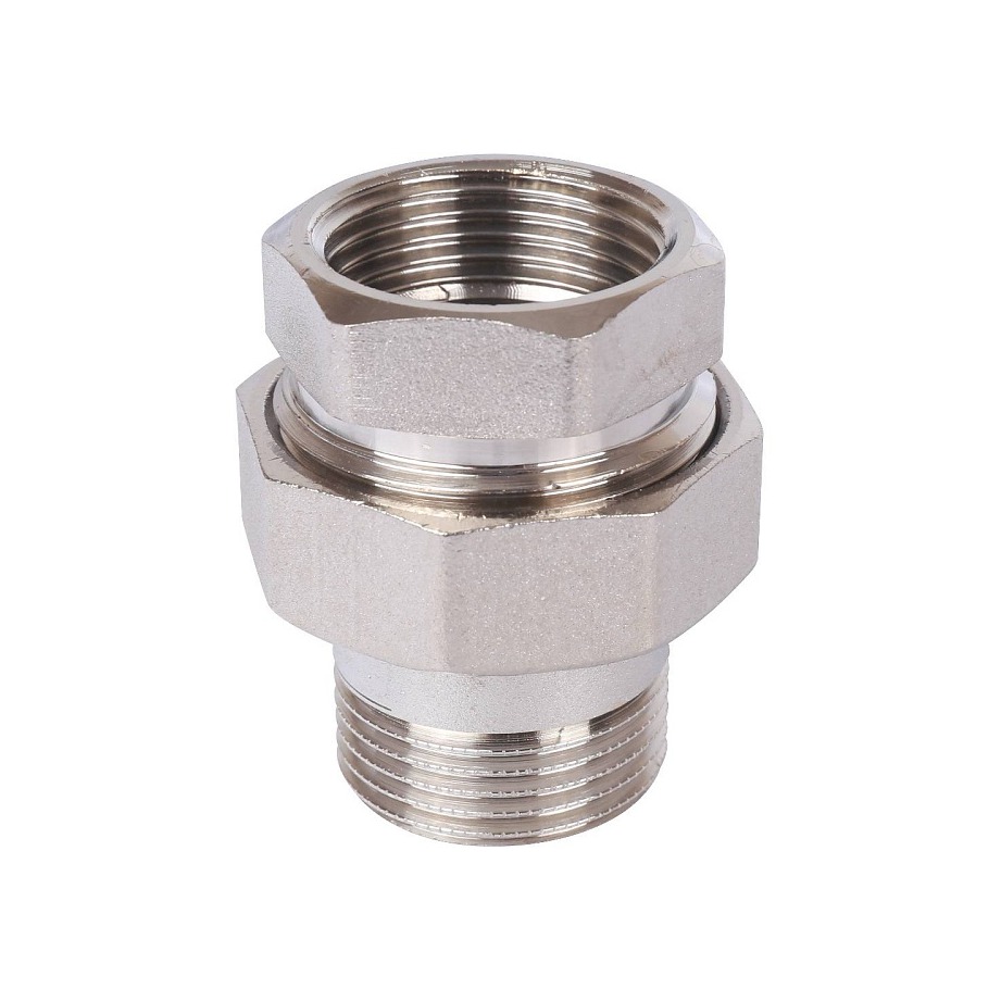 Разъемное соединение типа «американка» с внутренней/наружной резьбой, уплотнение под гайкой по плоскости.