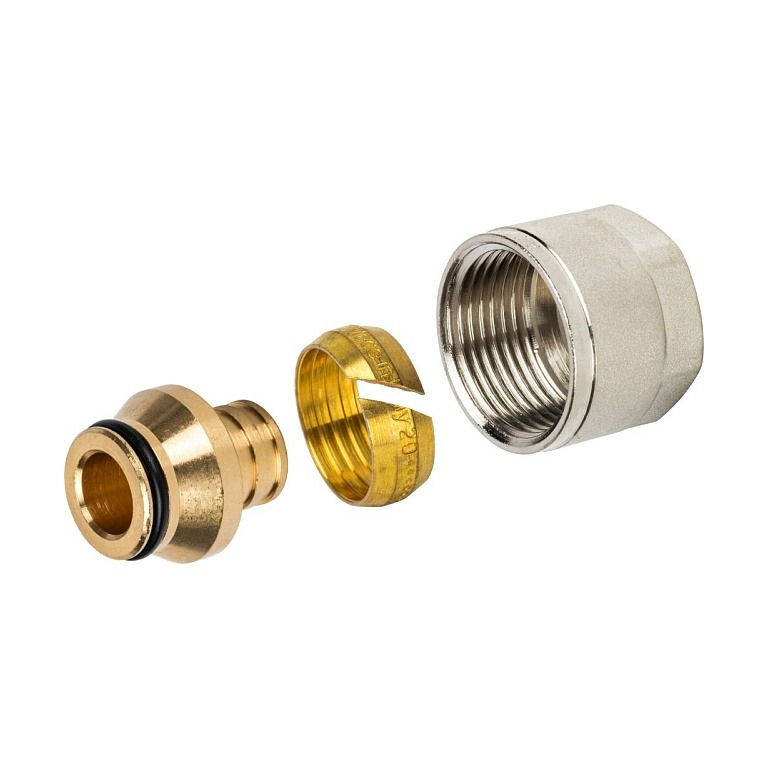 Компрессионный фитинг STOUT используется для подключения серой трубы 20x2.8 к распределительным коллекторам и прочей арматуре.