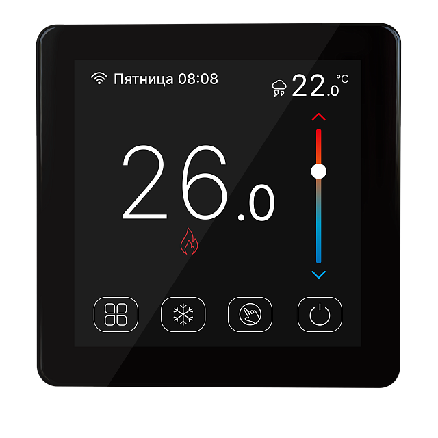 Термостат для теплого пола STOUT с цветным сенсорным дисплеем (цвет черный)
