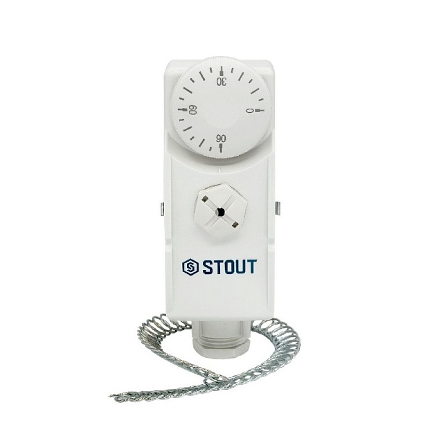 Функционирование термостата основано на принципе теплового расширения жидкости, находящейся в специальной капсуле. Жидкость в капсуле реагирует на повышение или понижение температуры изменением объема. Это расширение через капиллярную трубку передается на переключатель реле, который замыкает или размыкает электрические контакты. Управление термостатом производится при помощи диска настройки температуры.
