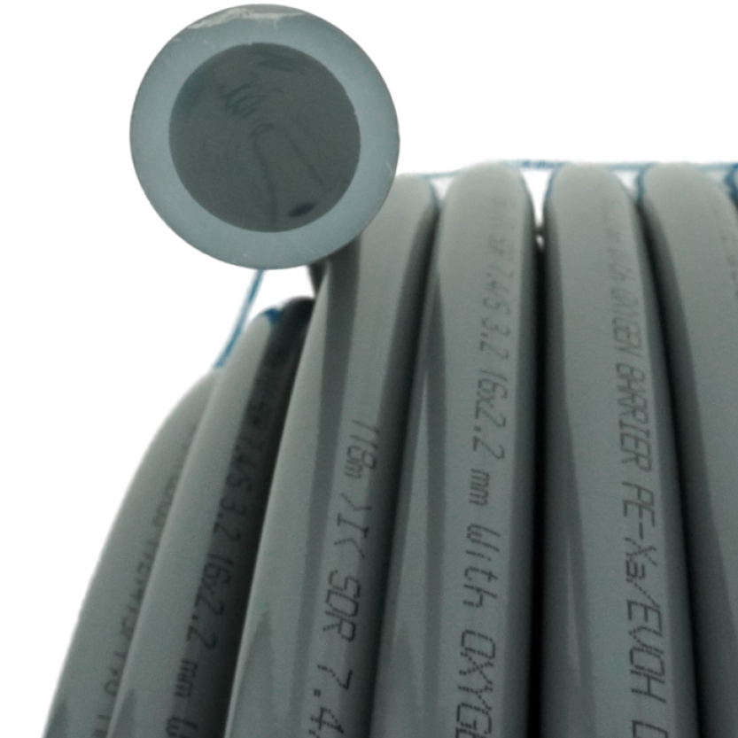 • Покрыта кислородозащитным слоем EVOH, который не позволит кислороду проникать в теплоноситель если труба используется для отопления.