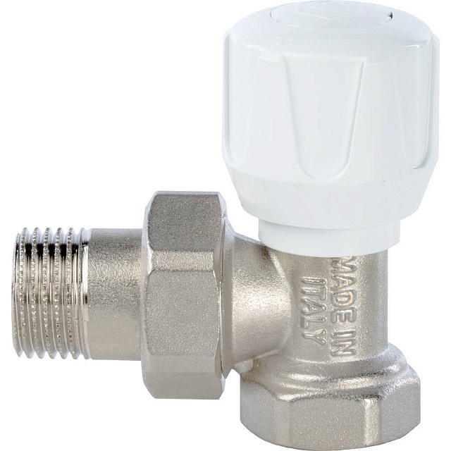 Вентиль ручной регулировки угловой STOUT - 1/2" (ВР/НР-американка, PN10, Tmax 120°C)